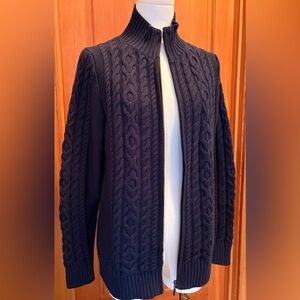 L.L.Bean Full Zip Navy Cable Knit Sweater 100% Cotton Classic Fisherman Style M