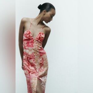 Patchwork print midi dress with halter style bodice by Zara. EUC. Size small