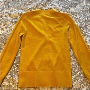 Elegant cardigan in golden hue. Features signature logo buttons.