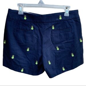 J.Crew Women's Size 6 Chino Shorts Navy Blue, Pineapple Embroidery G2319