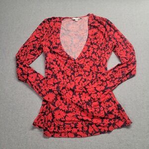 Boden Red Blue Floral Faux Wrap Jersey Top Womens Size US 14 Long sleeve
