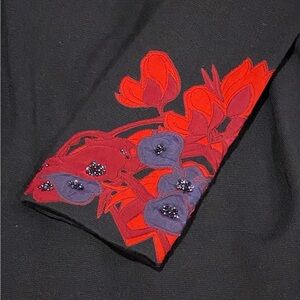 TORY BURCH Lisanne Purple Red Beaded Artsy Floral Appliqué Navy 3/4 Top Sweater