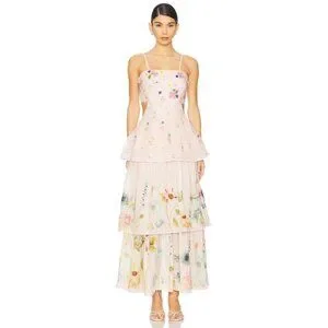 NWT LA FUORI Garden Gala Tier Dress in Pink Multi Floral