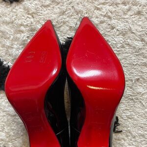 Sleek and glossy black heels. Signature red sole. Iconic stiletto design.