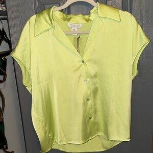 Chic light green satin shirt by Rachel Zoe. Features button-down front and short sleeves. New with tags!
