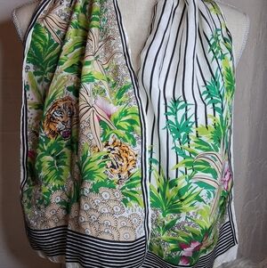 Vintage Silk Lush Jungle Motif Rectangular Scarf