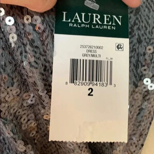 NWT. Ralph Lauren. Gray Kaylene sequin cocktail dress. Short sleeves. Shimmery and sparkly. Perfect dress to stand out. New Years. Wedding. Formal. Size 2.