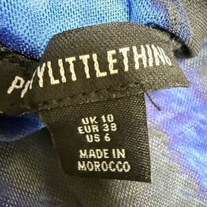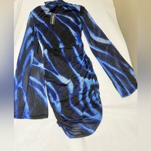 NWT: PrettyLittleThing Blue Abstract Print Mesh Cut Out Flared Sleeve Bodycon Dress 🔹 Sz:6 USA Bold long sleeve dress with striking blue and black pattern. Perfect for making a statement.