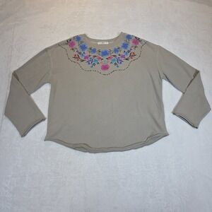 Natural Life Crewneck Sweater Womens Medium Gray Floral Pullover Cozy Roll Hem