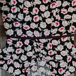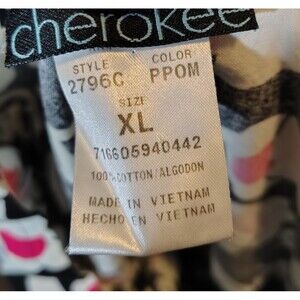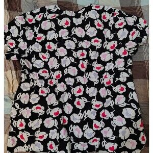 Cherokee Womens Scrub Top Size XL RN#93643 White Cherry floral Black Pink