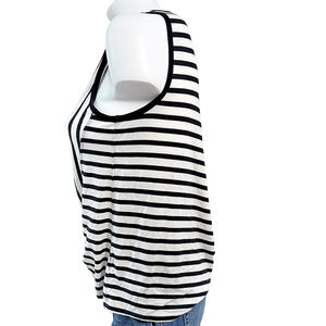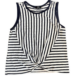 Jones New York Signature Tie knot front black white stripe muscle tank top casua