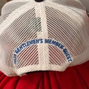 Back of the hat includes embroidered “Gentlemen’s Memories” in blue thread, adding a refined, lifestyle-brand touch.