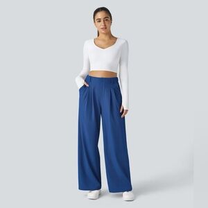 Brand new with tags Halara wide leg trousers in a vibrant royal blue color. Features a comfortable elastic waistband with pleated front and flowy wide-leg silhouette. Lightweight textured fabric that’s perfect for work, travel, or casual wear.
