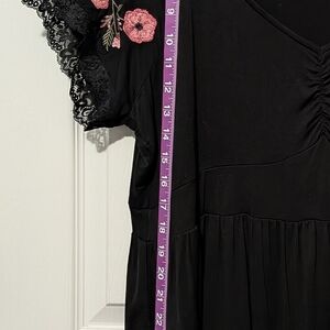 Torrid Brand Black V Neck Top With Lace And Embroidery Detailed Sleeves Torrid 2