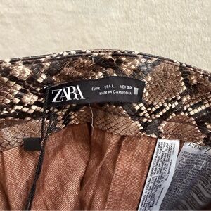 NWT Zara Brown Snake Print Faux Leather Plated Midi Skirt Women’s Large