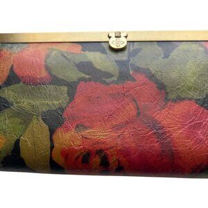 Patricia Nash Floral Leather Wallet With Brass Frame & Multiple Compartments