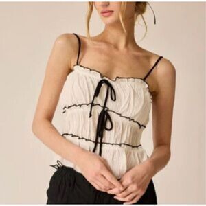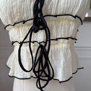 New with tags, Selfie Leslie Indikah maidens tie detail crop top. Cream top with black details. Adjustable strap.