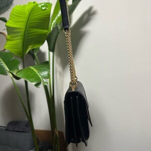 - chain crossbody strap makes it easy to modify to shoulder bag