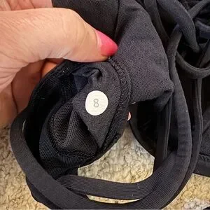 Elegant black sports bra with stylish crisscross straps. Light support. No pads included