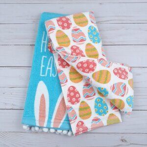 Terry Cloth Kitchen Towels Easter Bunny Eggs Set of 2