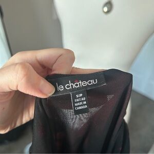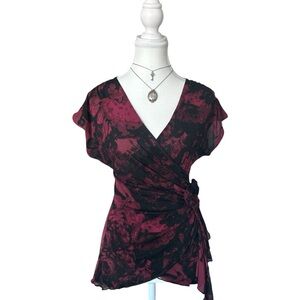 Y2K “Le Chateau” Black and Red Abstract Print Asymmetrical Mesh Top
