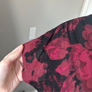 has floral ruffle detail on waist. in excellent, lightly worn condition. sheer in some parts (photo 6), not sheer in bust area!