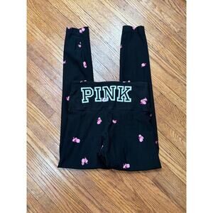 VS PINK Floral High Waisted Black Yoga Leggings Sz S Workout Gym Athleisure
