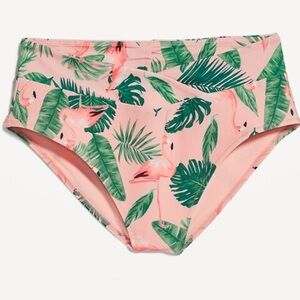 Old Navy High Waisted Cross Front Pink Flamingo Bikini Bottom NWOT