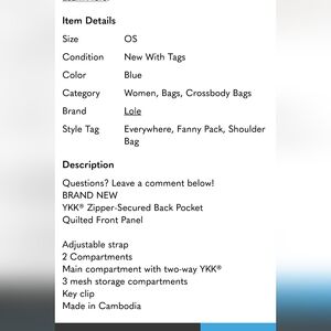 Lolë Unisex Quilted Belt Bag / Sling Bag, nw, Blue