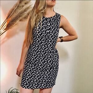 J. CREW Navy Blue White Heart Print Tank Top Button Mini Knee Length Dress 4