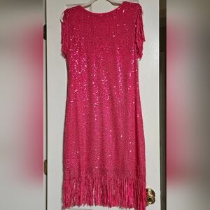 Pink Sequin Fringe Dress Womens Size Small
