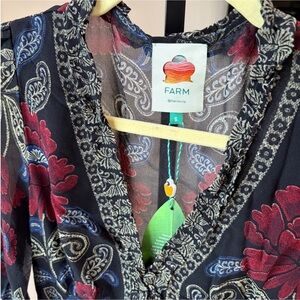 Farm Rio: Black Valentina Ruffled Long Sleeve Midi Dress