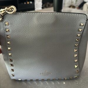 Valentino Rockstud grey flip lock crossbody messenger bag with dust bag