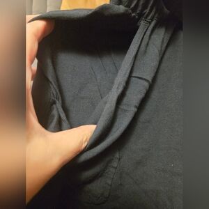 solid black, has pockets, come with tie belt