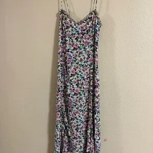 Embrace elegance with this floral spaghetti strap maxi dress. Perfect for any occasion, this dress features a beautiful blend of pink and green hues. Ideal for a chic and stylish look.