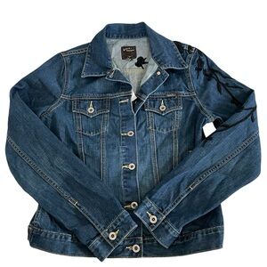 Lucky Brand Denim Jacket Floral Embroidery Y2K Fashion Blue Buttons Vtg NWT