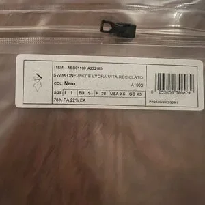 Sophisticated black one-piece with gold accents. Features a unique cut-out and one-shoulder design. Perfect for a bold beach look.