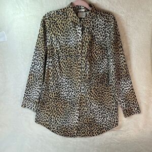Chico’s No-Iron Leopard Print Tunic Shirt Size 1 (M) Long Sleeve Animal Print