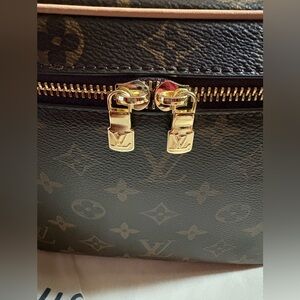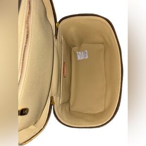 Elegant vanity bag in monogram brown. Perfect for stylish travel and organization.