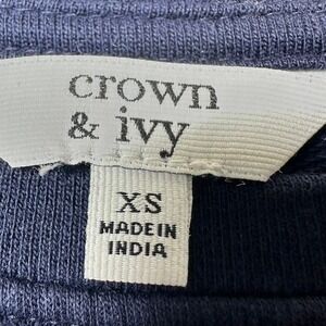 Crown Ivy Womens Navy Blue Scalloped Trim Crewneck Long Sleeve Sweatshirt Sz XS