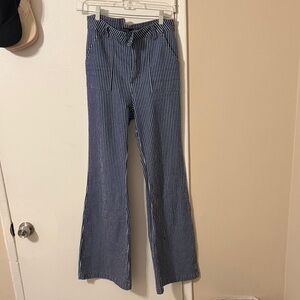 Chic navy and white striped pants. Ideal for a trendy outfit.