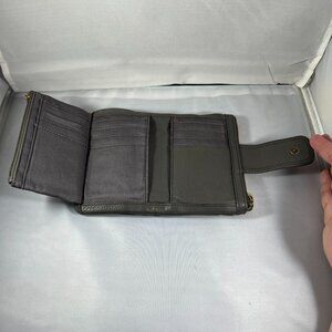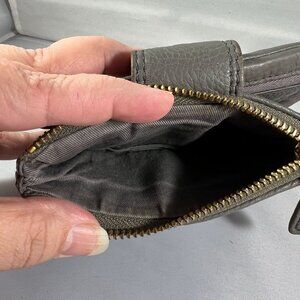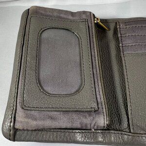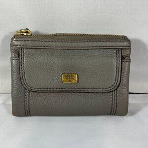 Fossil Gray Leather Wallet With Gold Accents & Multiple Card Slots