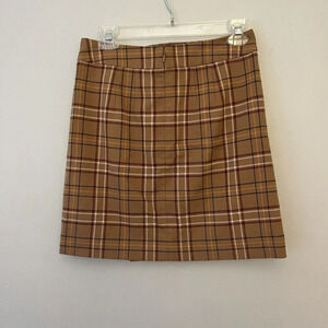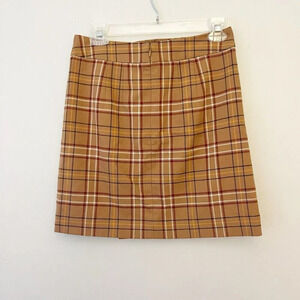 Loft Plaid Mini Skirt Womens 0P Petite Academia Brown Faux Wrap Preppy Old Money