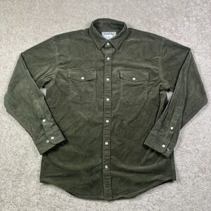 Poncho Corduroy Men's Large Pearl Snap Western Shirt Olive Green Huckberry