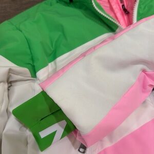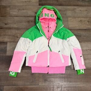 Bogner Vila quilted down ski jacket in pink and green