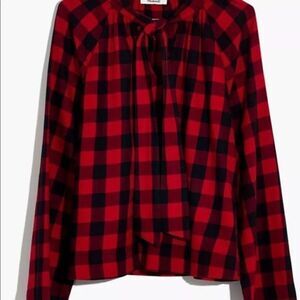 Madewell Ragland Tie-Neck Long Sleeve Buffalo Check Top