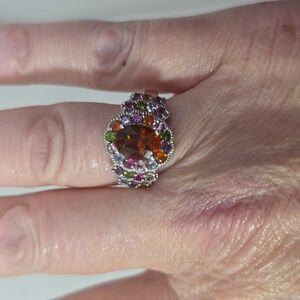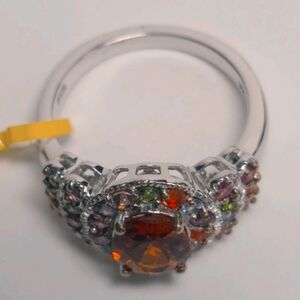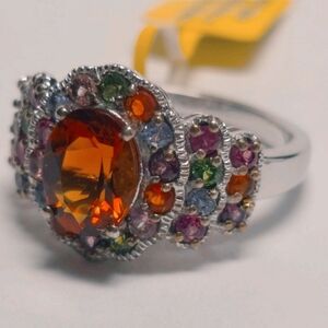 NWT This ring is a show stopper! It features the stunning center almandine faceted Garnet Stone surrounded by genuine peridot, tourmaline ruby, citrine, aquamarine,amethyst, blue topaz and white topaz stones. All this beauty is set in solid 925 sterling silver! What a find by designer Chuck Clemency! In NWT vintage condition!