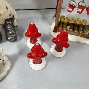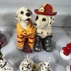 Firefighter-Themed Collectible Figurines Set W/ Dalmatian Dogs Fire Hydrants Fir