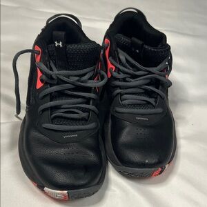 Dynamic sneakers with a bold black base and striking red highlights. Ideal for active play.