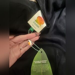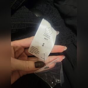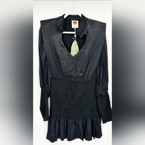 A basic-but-bold way to get through any season (or situation!). This dress by FARM Rio has an elevated silhouette, cute heart-shaped detail, a body-hugging skirt, and standout sleeves to level up your outfit’s mood. Size: Small Color: Black Smocked waist and sleeves Cut out neckline Long sleeve Mini length Viscose NWT - new with tag